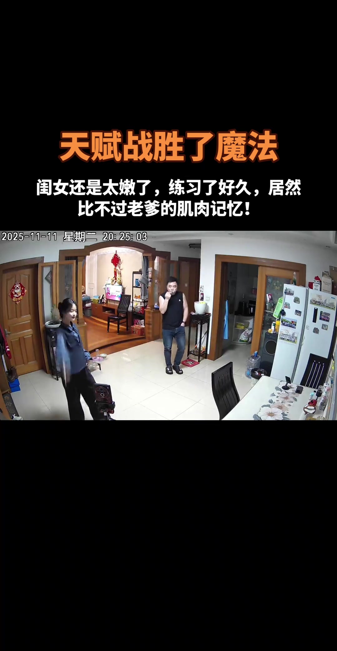 闺女还是太嫩了,练这么久比不过老爹的肌肉记忆!
